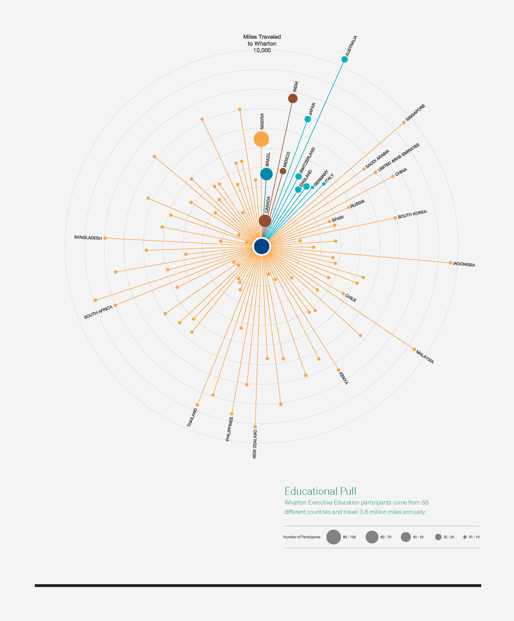Educational Pull: Wharton Executive Education participants come from 88 different countries and travel 3.8 million miles annually.